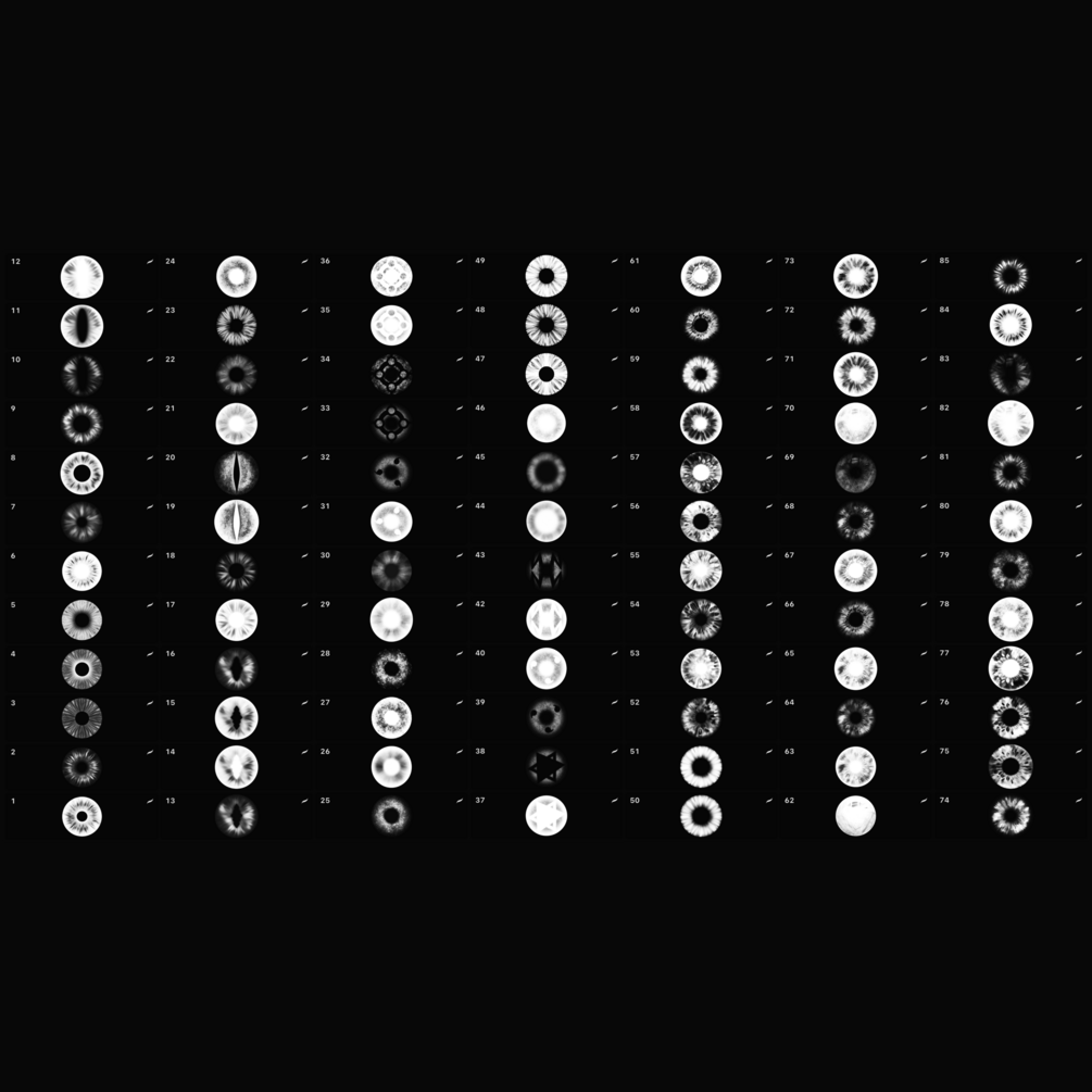 Highly detailed, realistic iris stamps for digital artists. This set includes a variety of shapes and sizes, matching a multitude of character and style designs.