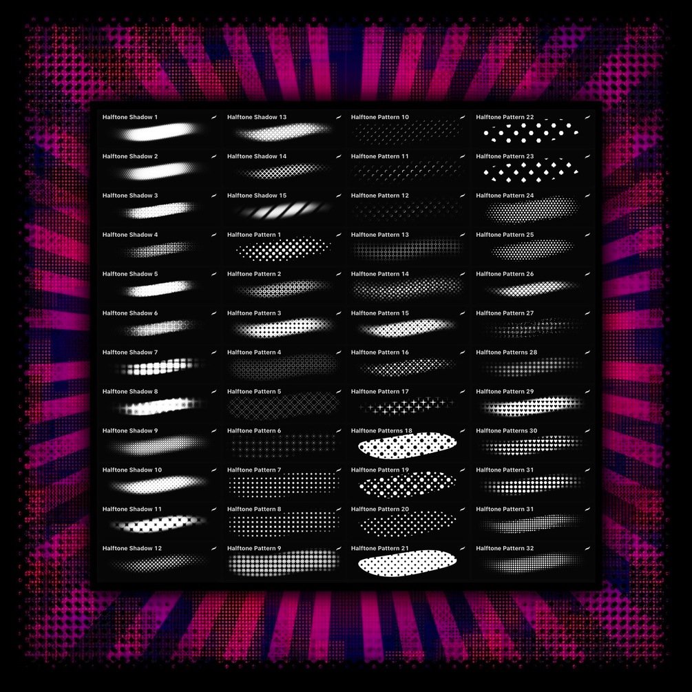 Stylize your digital art with these halftone brushes. Perfect for adding texture, shading, and creating vintage comic designs.