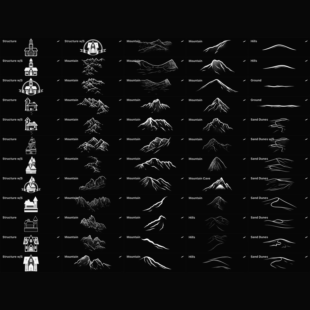 Design custom fantasy maps with this extensive collection of Procreate brushes.
